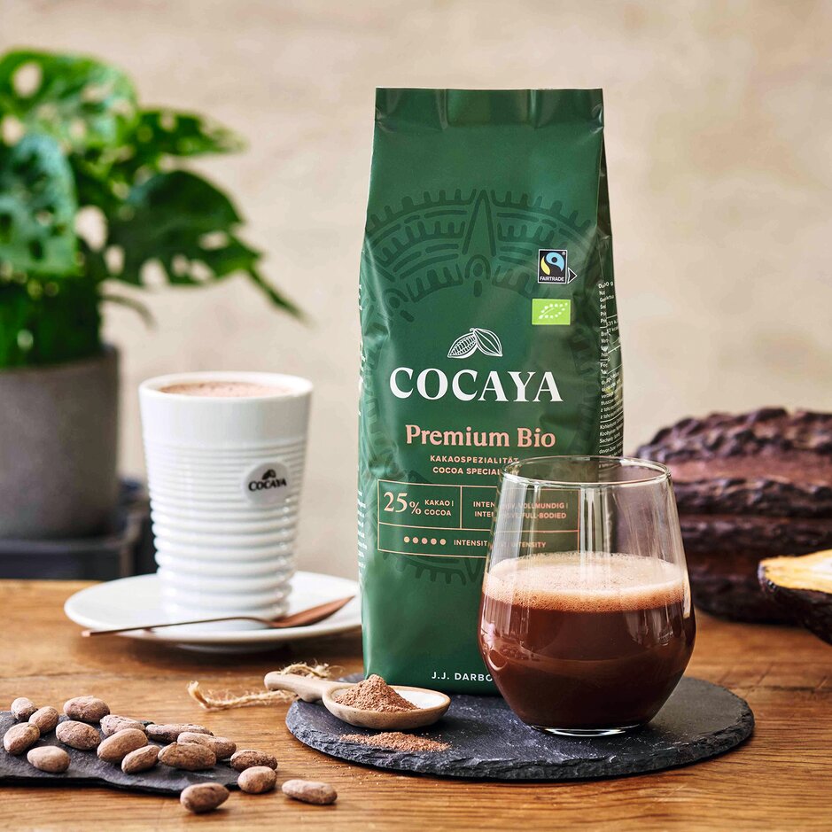Mit COCAYA präsentiert J.J. Darboven eine Premium-Marke, die sich mit hochwertigen Kakao- und Schokoladenspezialitäten exklusiv an den Außer-Haus-Markt richtet. Im Fokus stehen dabei erstklassiger Geschmack, hohe Qualität und eine einfache Zubereitung.